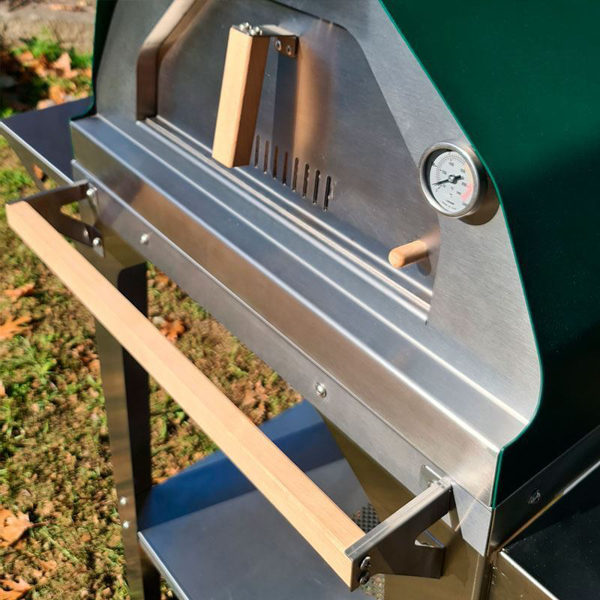 • Sécurité : Poignée en bois sur la porte du four à pizza et instructions de sécurité incluses